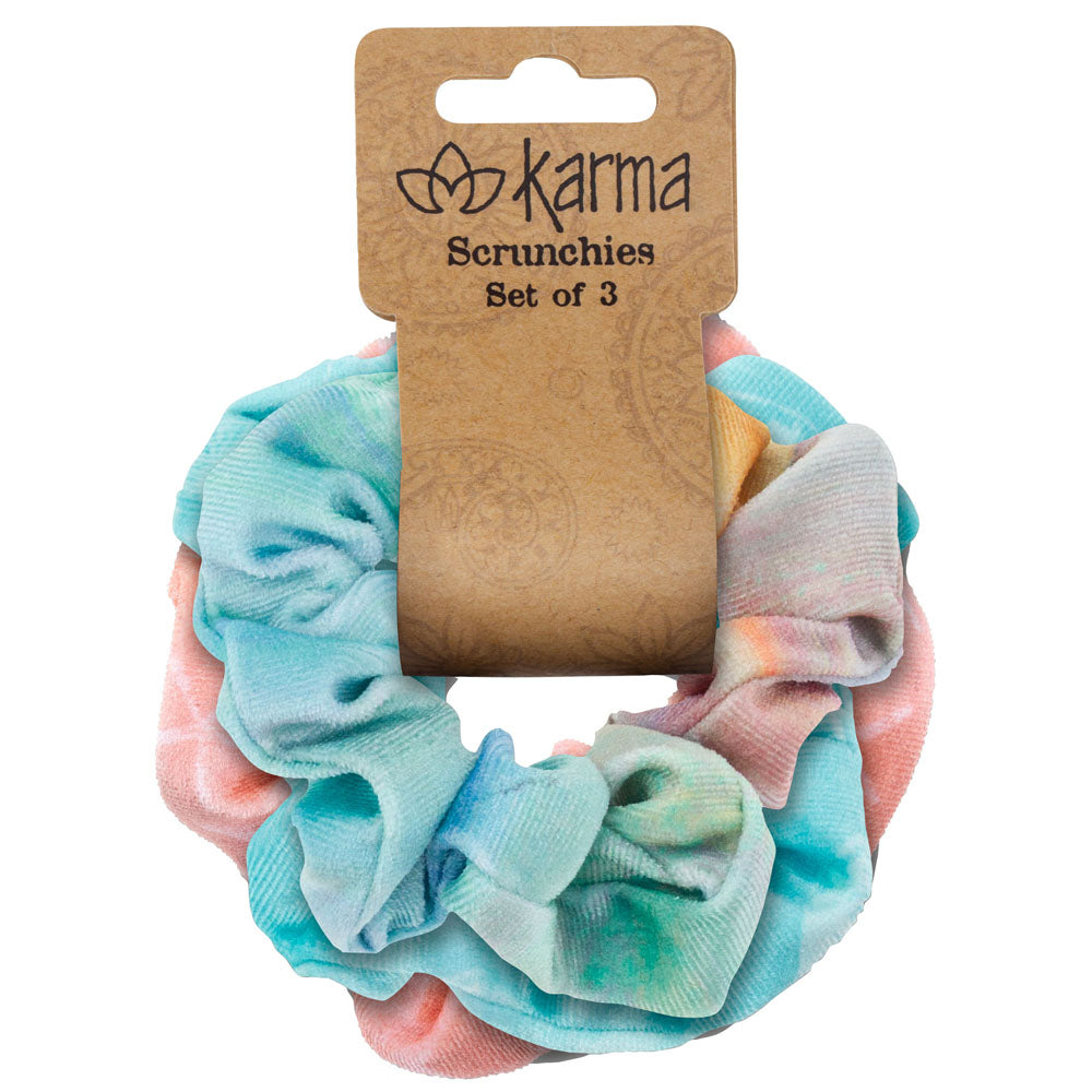 The scrunchies in this classic set of 3 are a must-have hair accessory! Each set comes with a variety of complementary colors perfect for any look. Wear it around your wrist or in your hair for a dual purpose fashion statement.