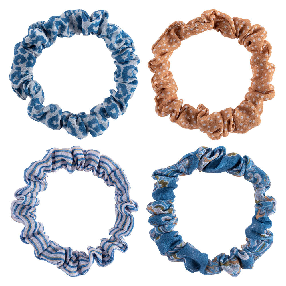 Take your updo to the next level with these slim scrunchie hair sets. Each set includes four varied and themed scrunchie patterns made with a soft polyester material. Accessorize ponytails, top knots or wear on your wrist to brighten up an outfit and add a hint of texture.