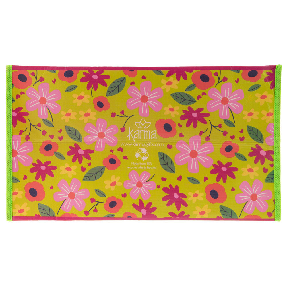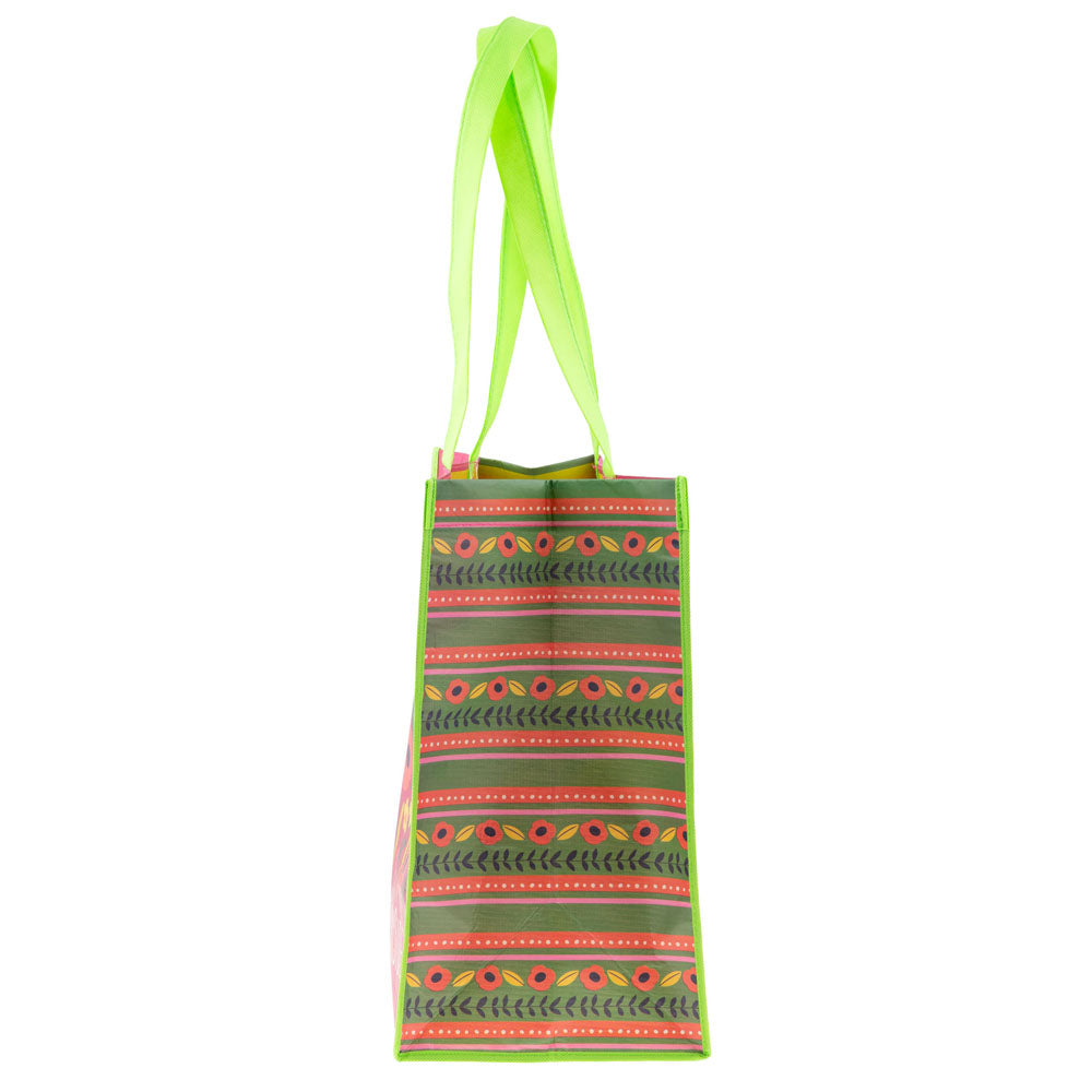 - 80% Recycled water bottles. Bright and colorful illustrations. Double handles