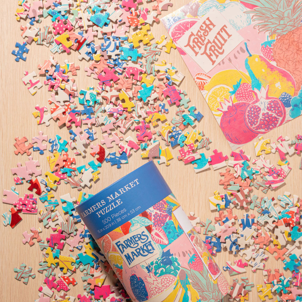 Get lost in the whimsical designs of our 500 piece Puzzles! With a reusable canister, these puzzles are a perfect gift for anyone (including yourself). Plus, it includes a frameable art print of the design - perfect for adding some fun to your walls. Happy puzzling!