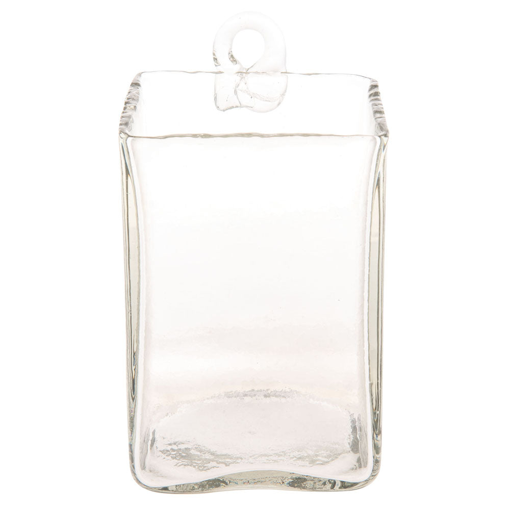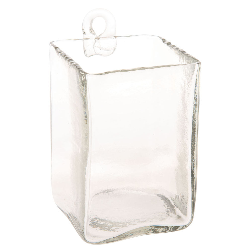 Hand blown hanging wall vases are a beautiful wall display for a natural aesthetic in the home. Fill with succulents, fresh or dried flowers, or plant clippings to bring the outdoors into your space. Each vase has a unique rectangular design and open loop on the back for easy hanging. Hardware not included.