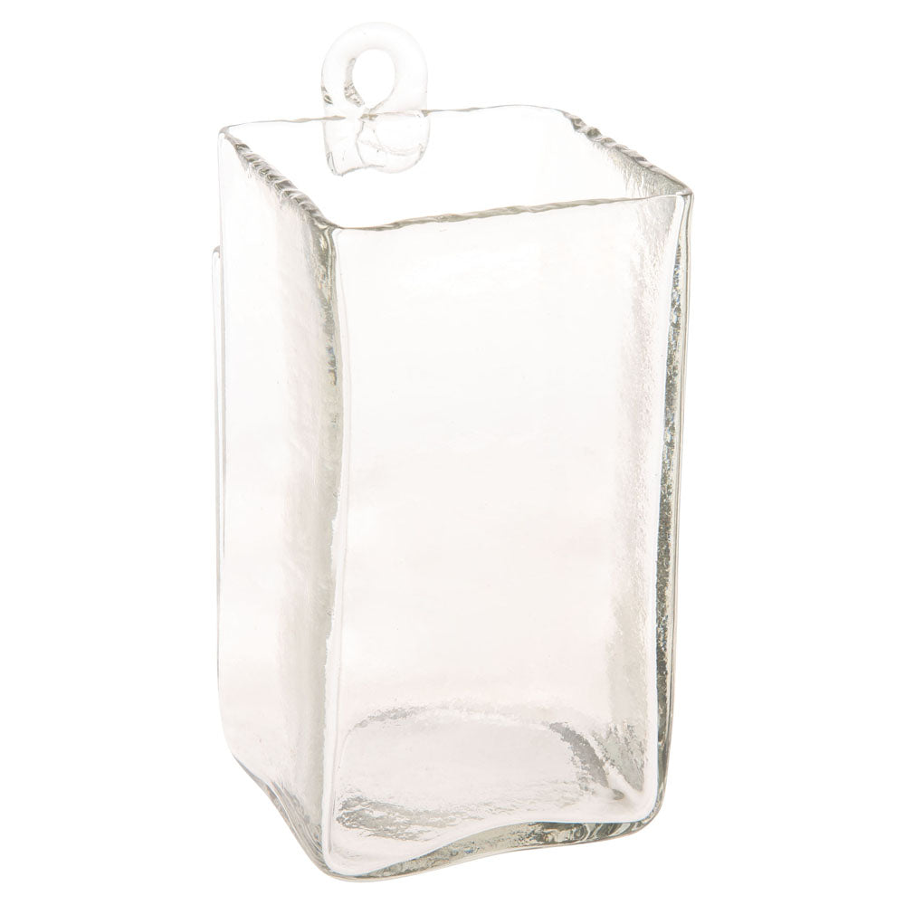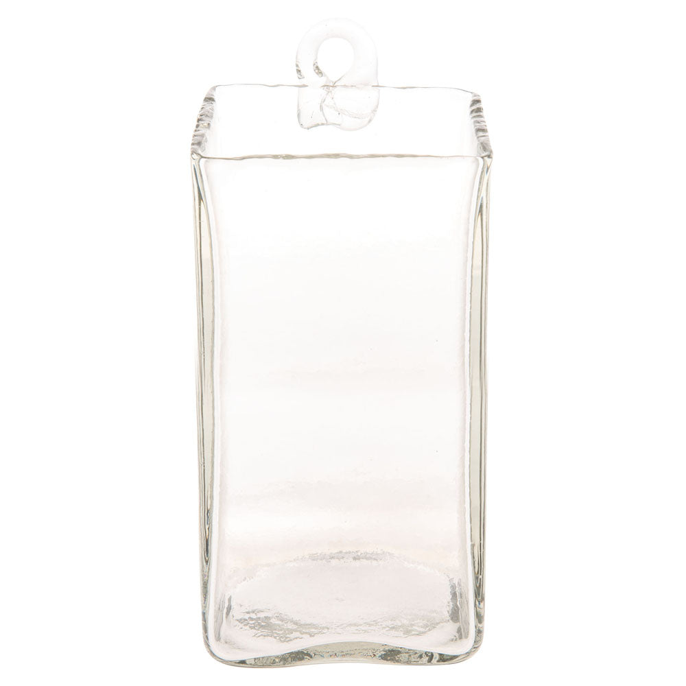 Hand blown hanging wall vases are a beautiful wall display for a natural aesthetic in the home. Fill with succulents, fresh or dried flowers, or plant clippings to bring the outdoors into your space. Each vase has a unique rectangular design and open loop on the back for easy hanging. Hardware not included.
