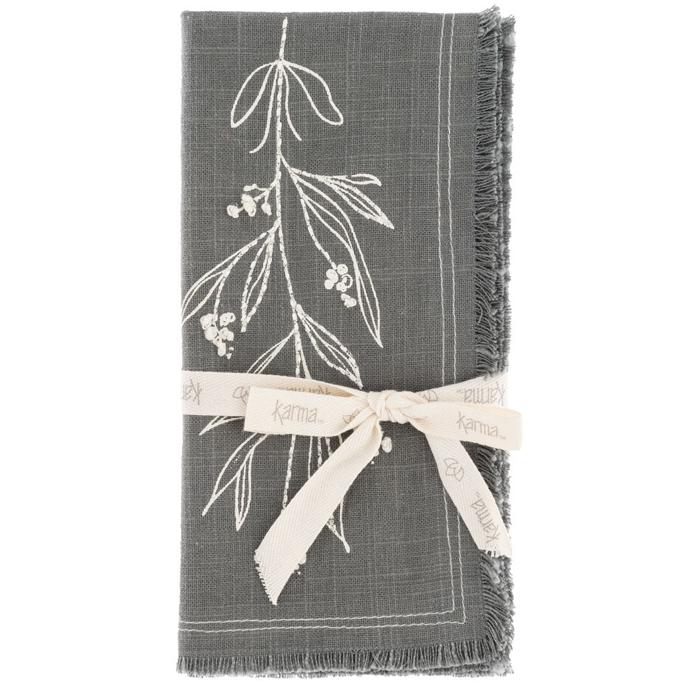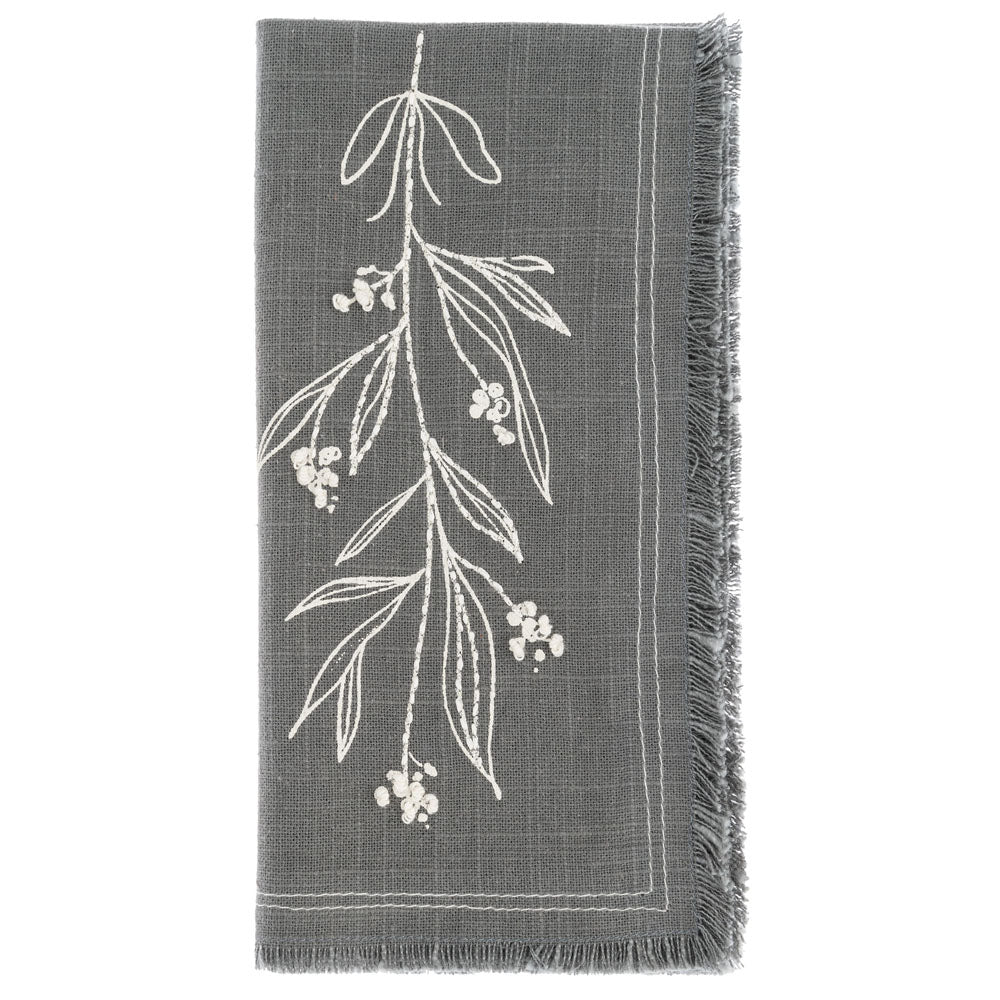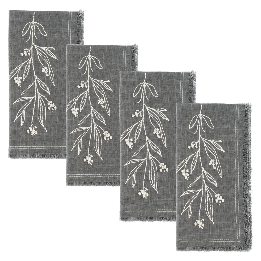 Mistletoe Embroidered Cotton Dinner Napkins Set of 4