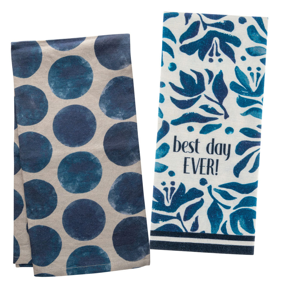 Blue Linen/Cotton Blend Tea Towel Set of 2