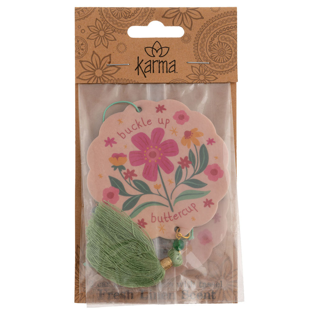 Keep your eye on the road and hands on the wheel while your car smells fresh. Everyone will want to hop in for a ride when your car is smelling great and looking even better because of your tasseled air freshener. Smelling of sweet essential oils and featuring a frosted stone bead and string tassel, these spring air fresheners are a fantastic and affordable gift option for family, friends and even yourself! Print on both back and front, there's a little something for everyone no matter the ride.